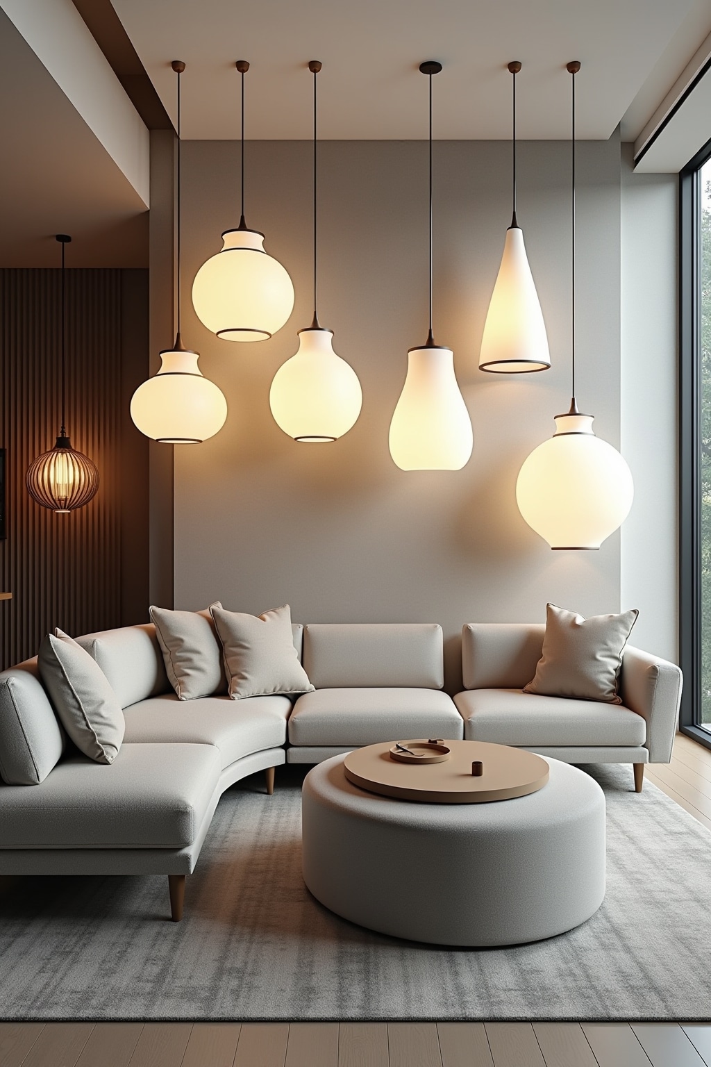 Große Pendelleuchten als Statement im Wohnzimmer